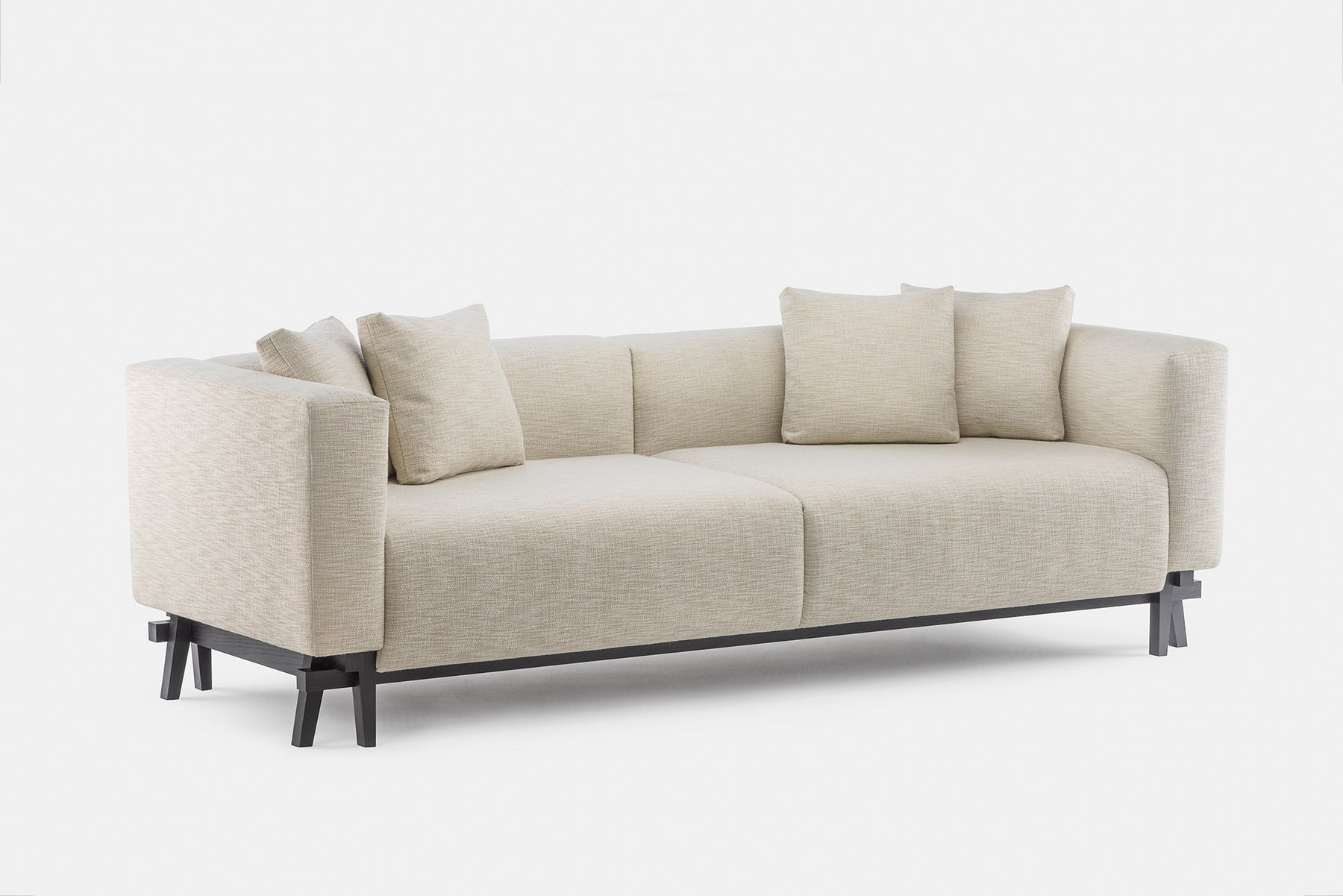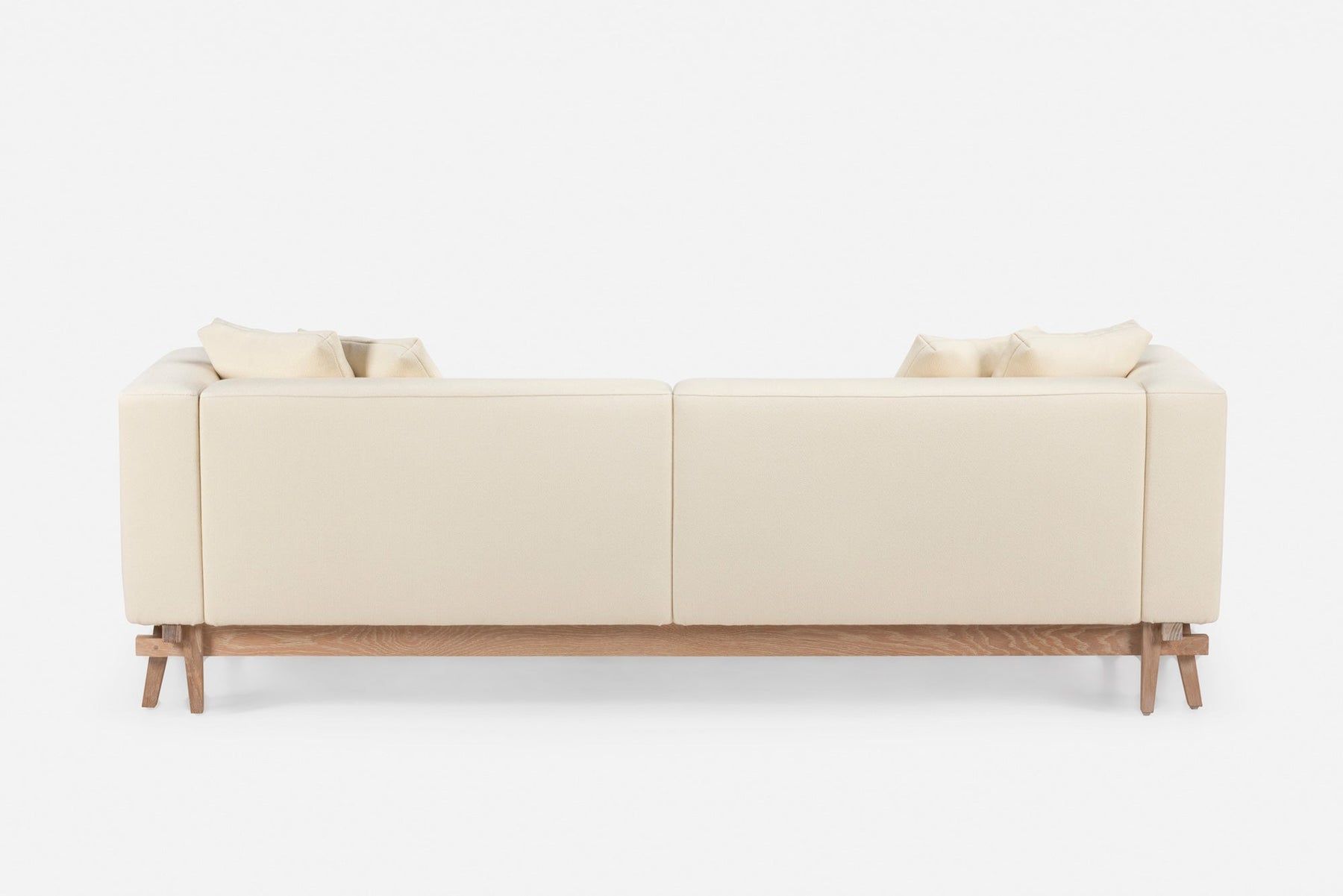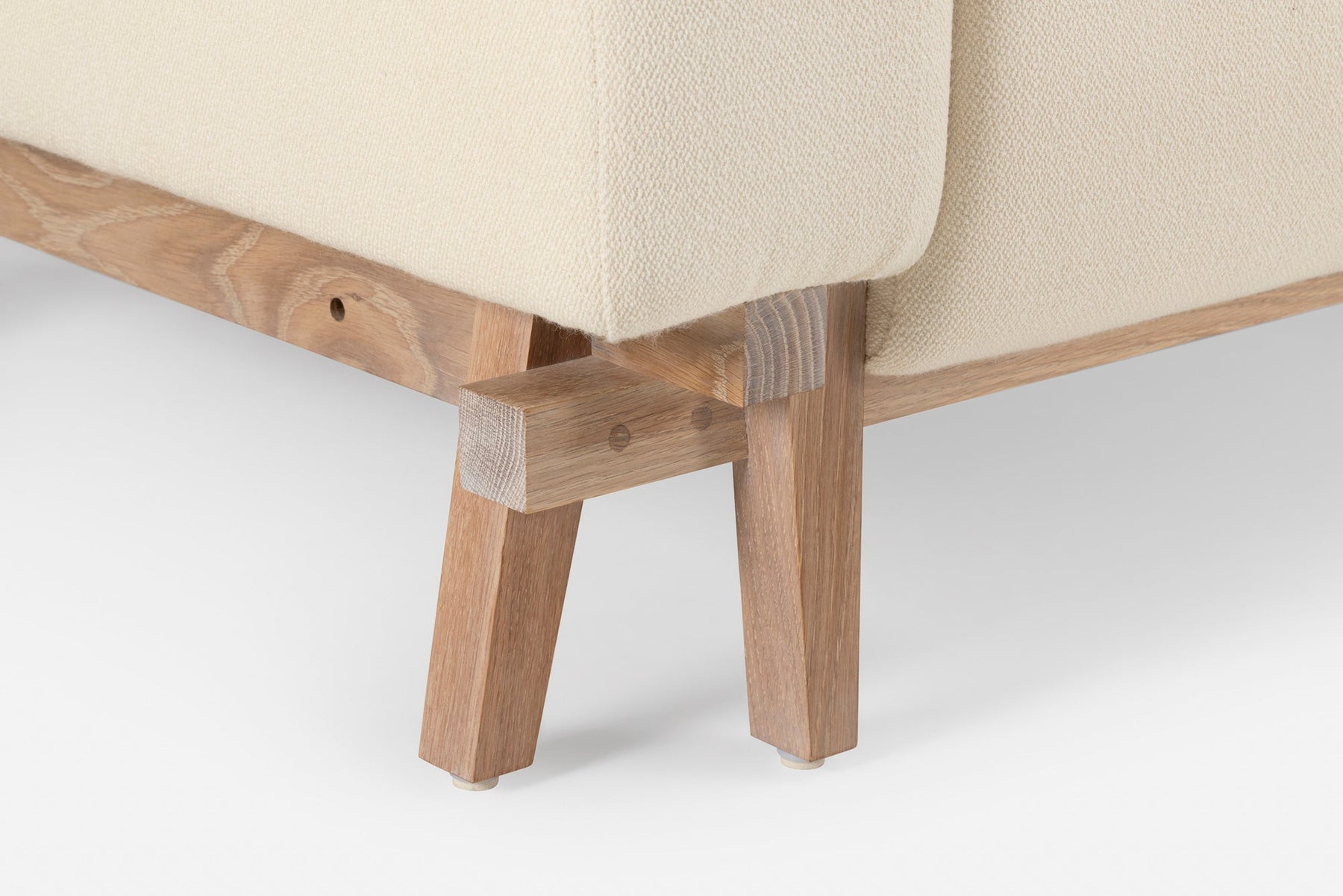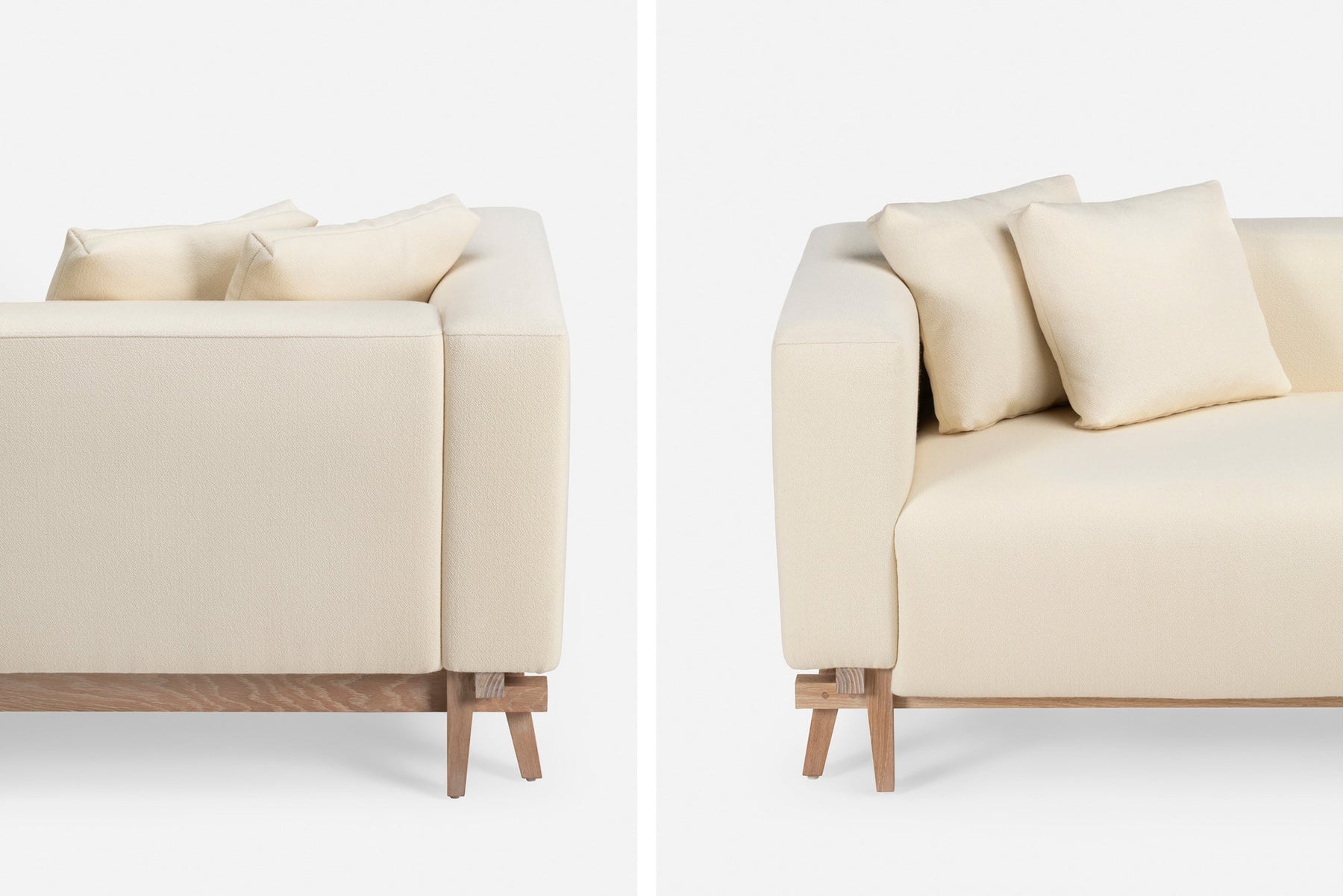 Sofa Eight is a continuation of Neri&Hu’s exploration of an expressive tectonic language. The main supporting element of the sofa is a traditional wood joinery assemblage of stacking members in the X, Y, and Z-axes, pinned together to form a structural base. The cushioned seating utilises memory foam for comfort while maintaining clean, firm lines.
