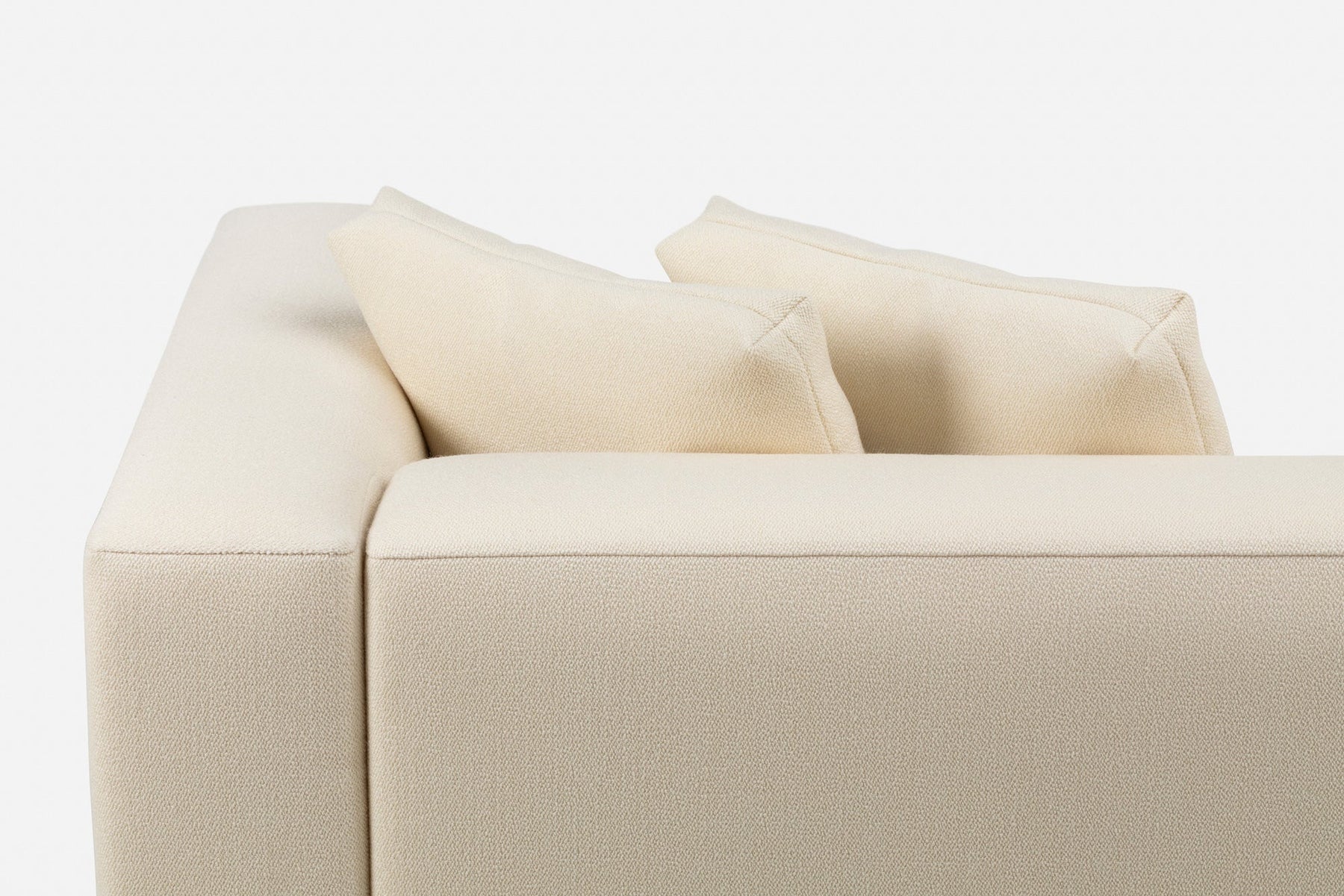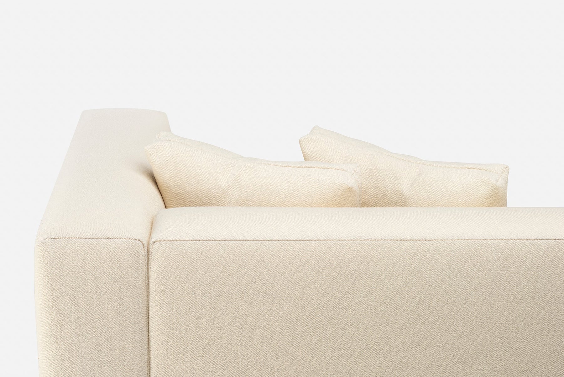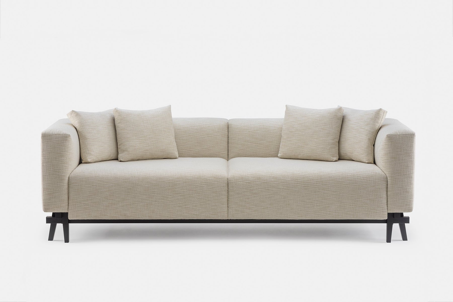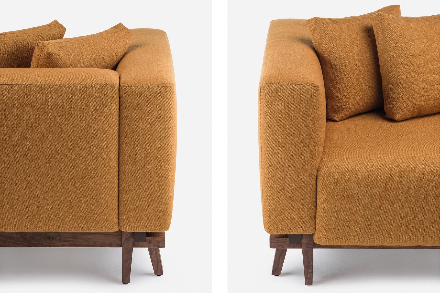 Sofa Eight is a continuation of Neri&Hu’s exploration of an expressive tectonic language. The main supporting element of the sofa is a traditional wood joinery assemblage of stacking members in the X, Y, and Z-axes, pinned together to form a structural base. The cushioned seating utilises memory foam for comfort while maintaining clean, firm lines.