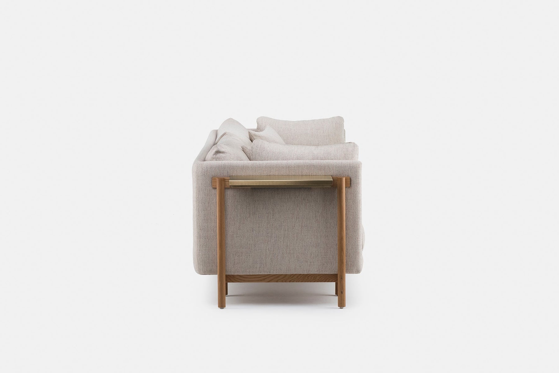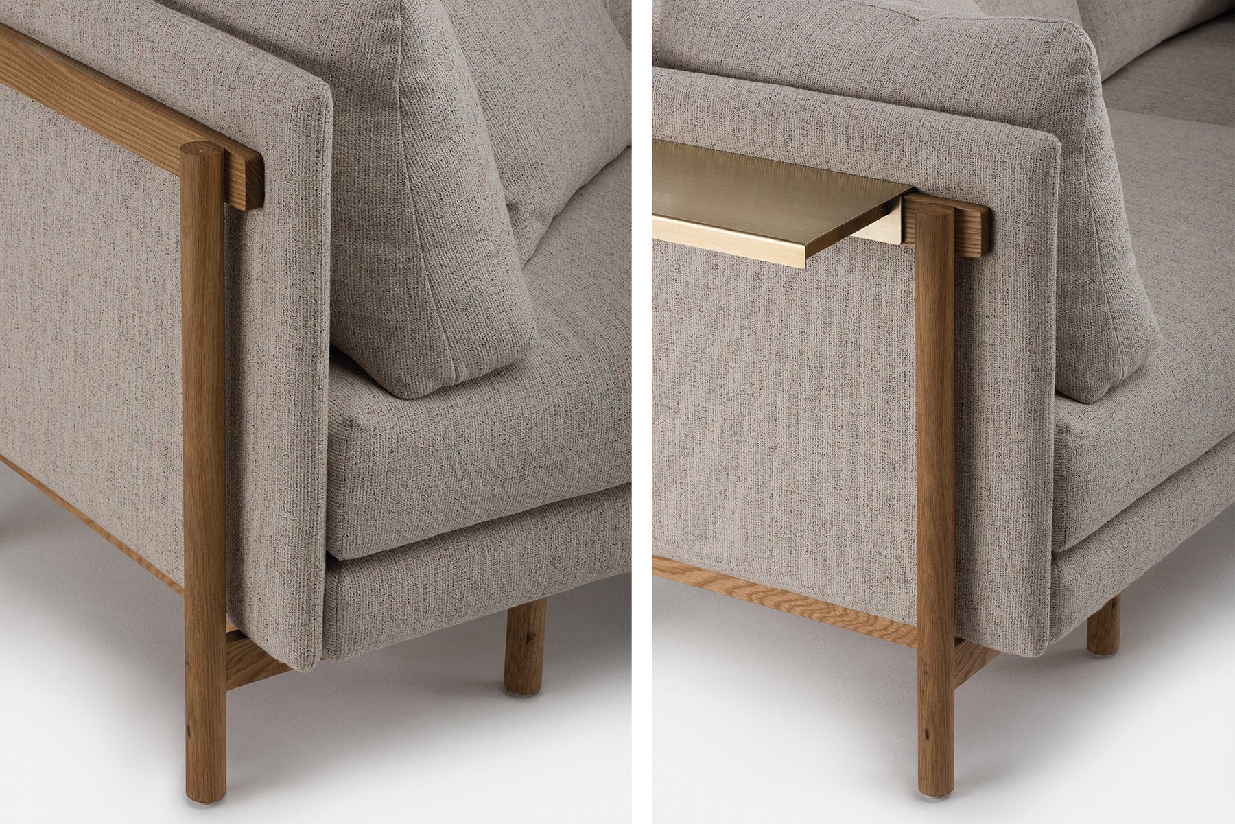 Frame series explores the architectural concept of tectonics, celebrating the art of construction. It was developed with the objective to create a single frame that could serve all the needs of the product such as a base, legs, decorative feature, and even practical support for accessories including optional brass trays. Made from solid wood, the frame’s appearance reveals clearly how it is constructed through the visible joinery details.
