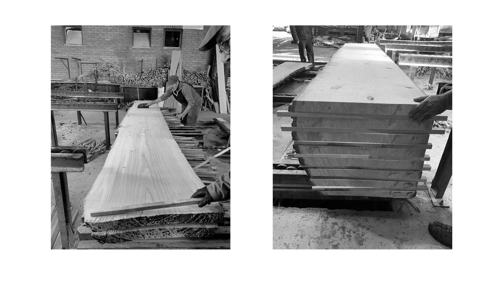 Table One reflects a universal heritage that is fixed without time or place. With an emphasis on function and the sensory response, this vast table, with lengths of up to 380cm (149 2/3”), has a tabletop made from just two planks of astonishingly proportioned planks of Douglas Fir timber. It is designed to be passed from generation to generation, earning the value of time and marks of memories past.